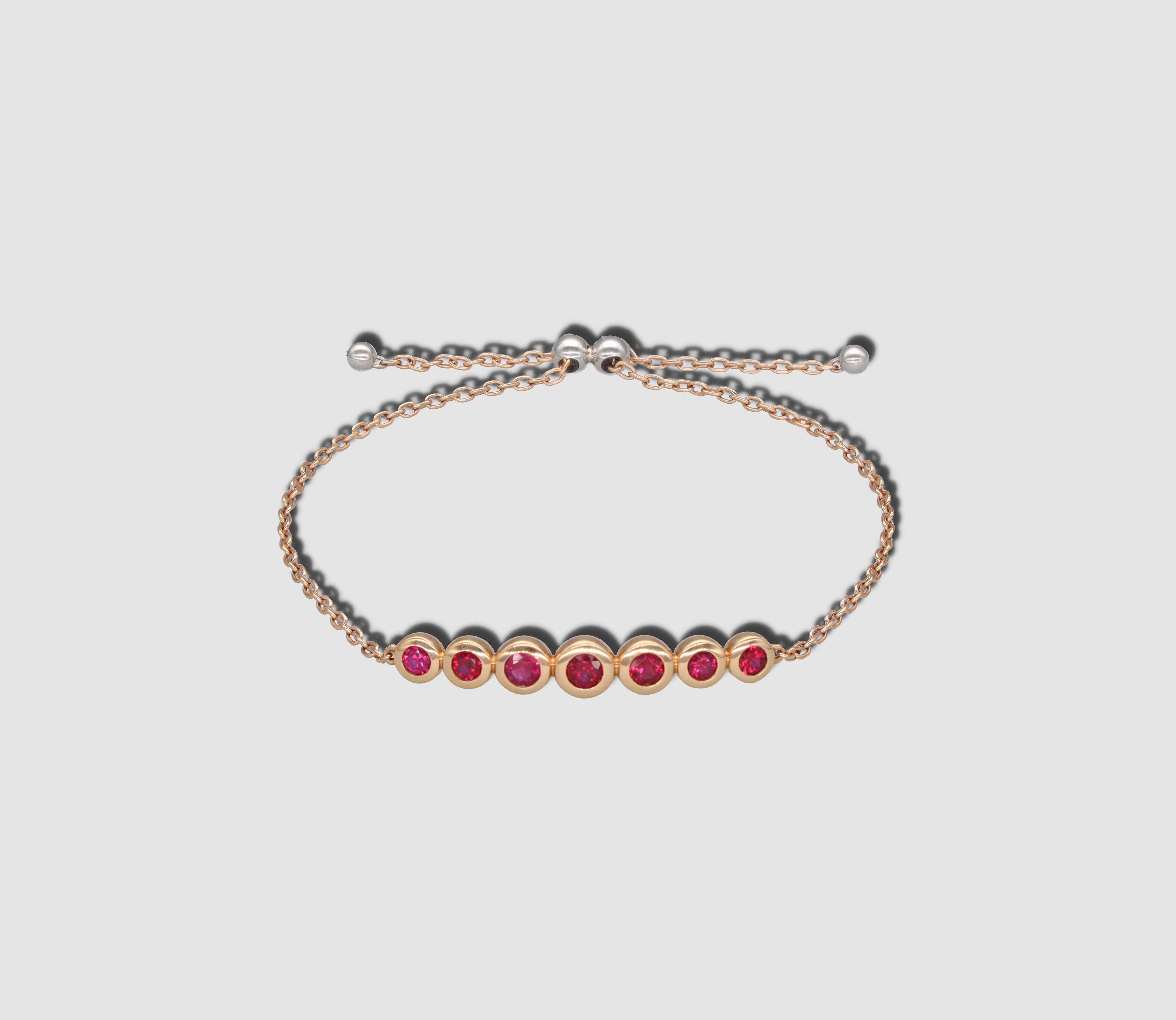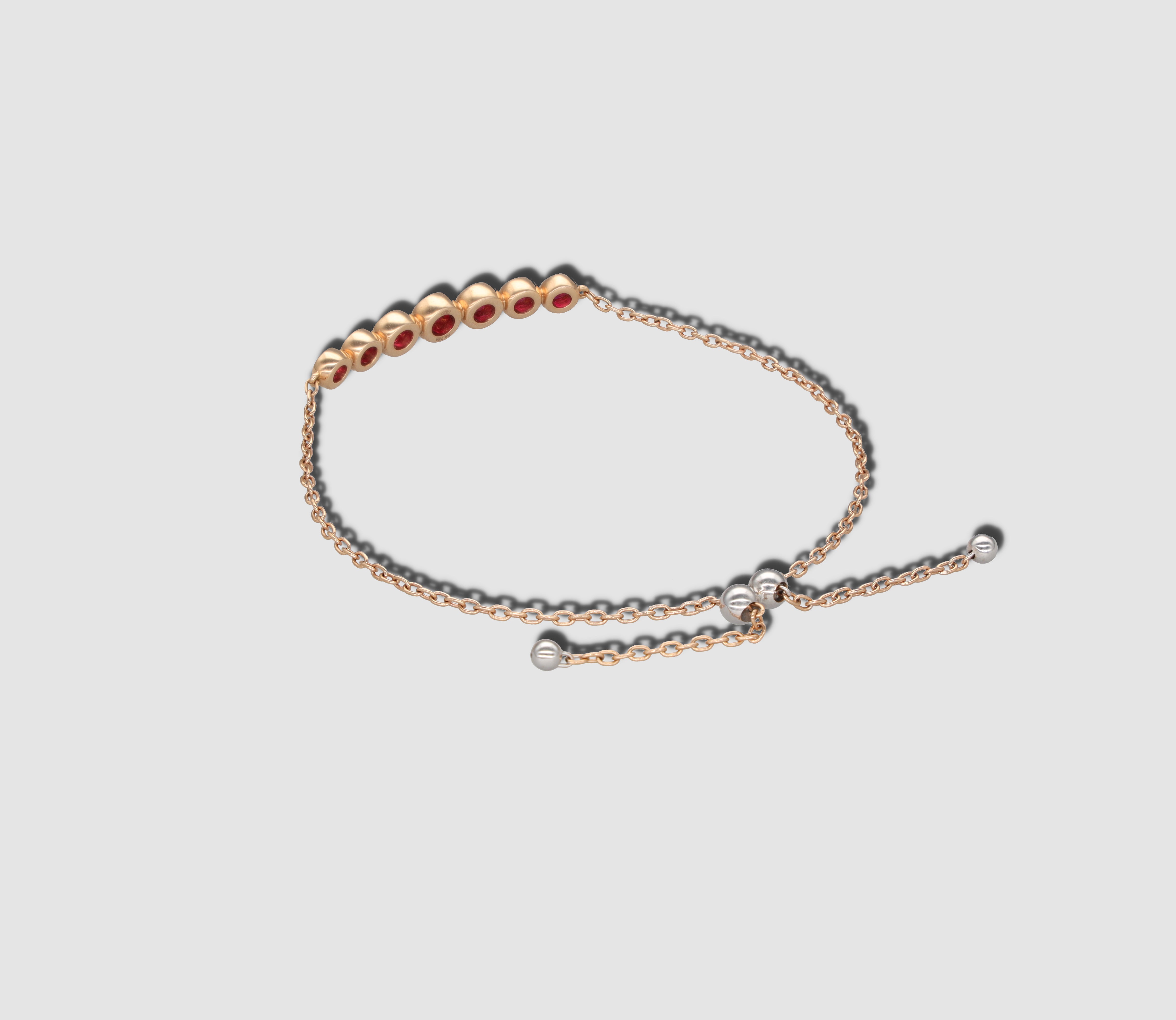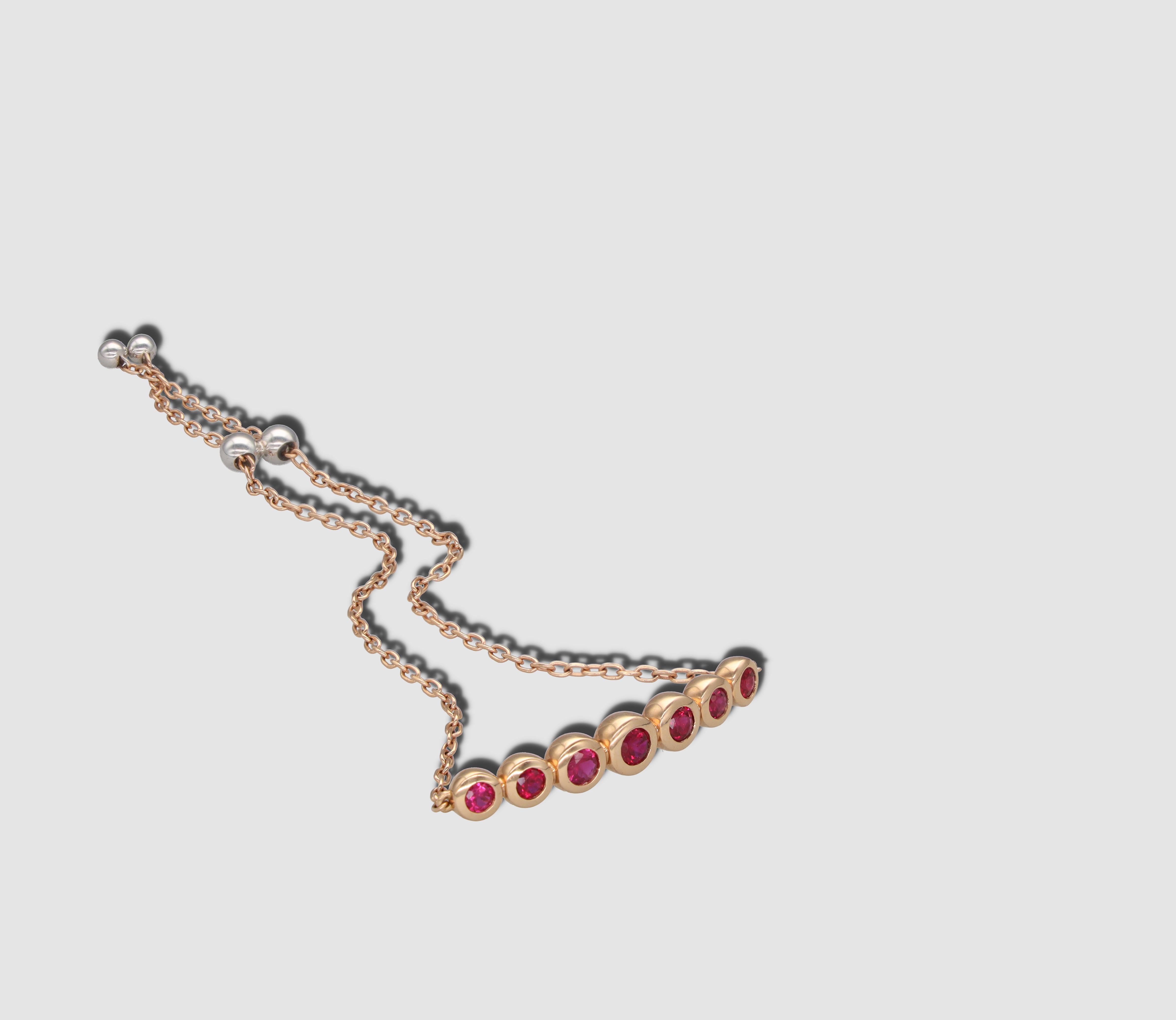 Dieses rote Bubble Armband ist aus 18 Karat Weiß- und Gelbgold gefertigt und enthält sieben Rubin Edelsteine mit insgesamt 1,02 Karat.